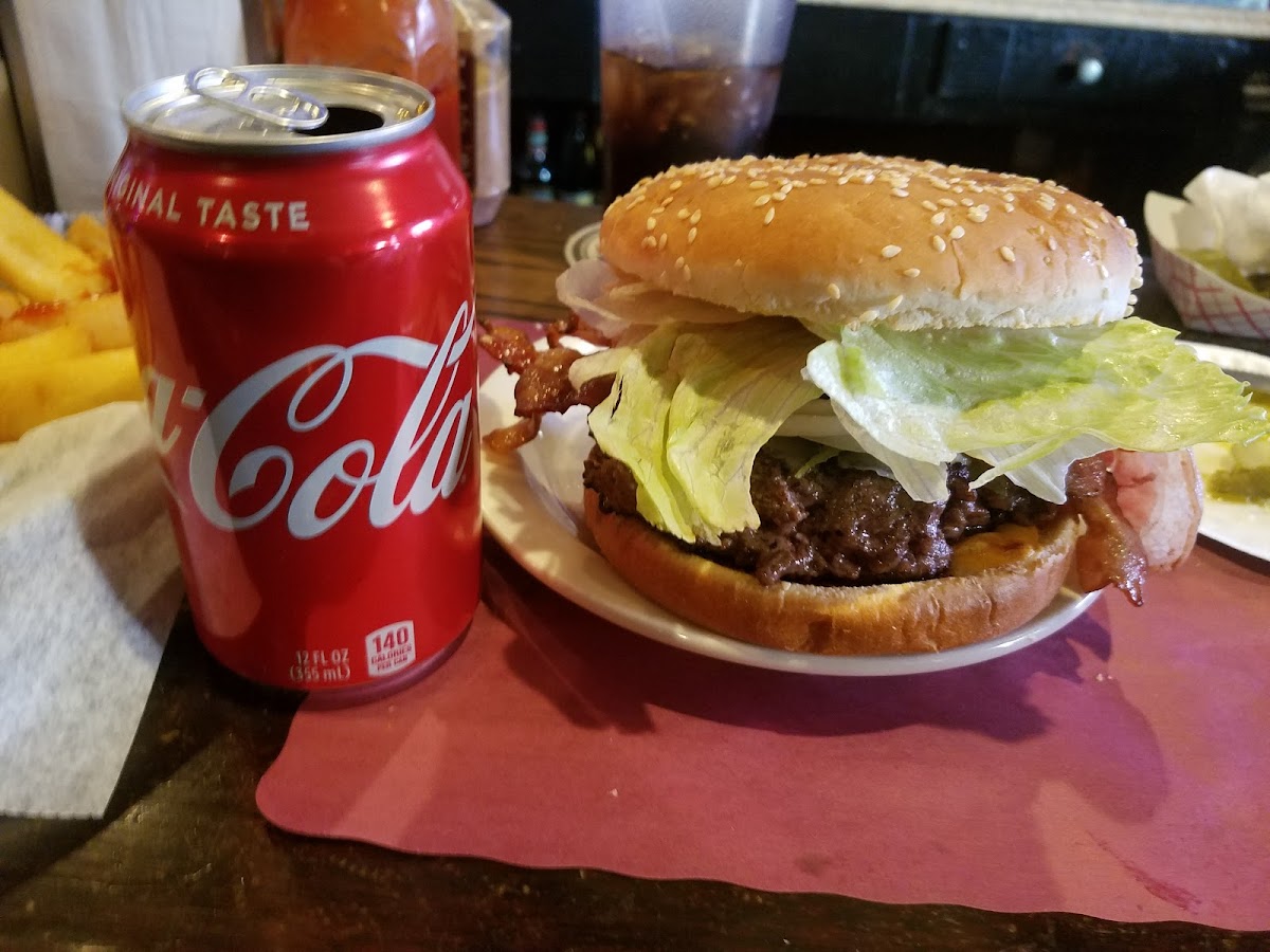 Typical dive bar with a really good burger. Went with some family and friends and we all got the same thing Bacon cheeseburger with steak fries and wings. The burger was huge and that didn’t take away from the flavor. The wings were solid. The service was so so, but it seemed as if there were only 2 people serving on a Saturday afternoon and they were doing the best they good. The parking situation is a little tough but they do have a free small parking lot. All in all definitely a must try if you love burgers.